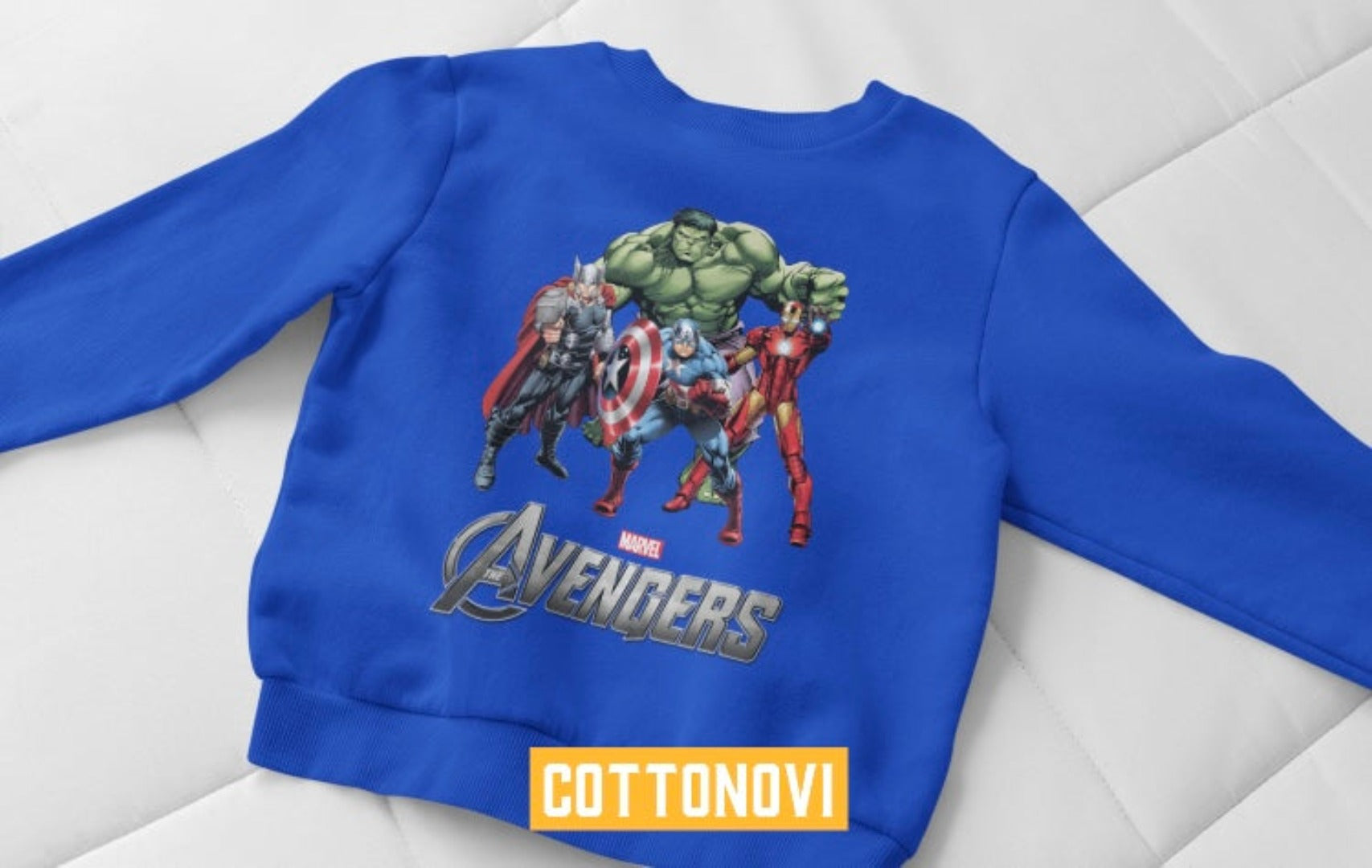 An Avengers 100% cotton fleece inside, fleece inside sweatshirt featuring an Avengers full print on the front.