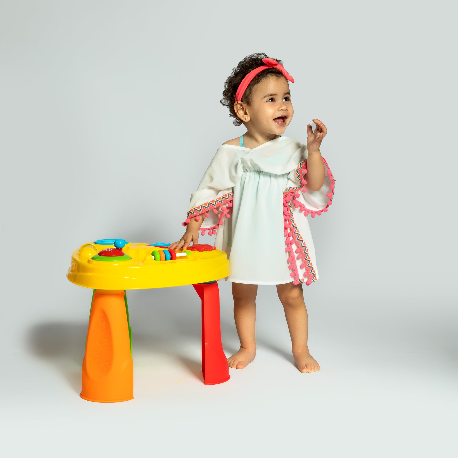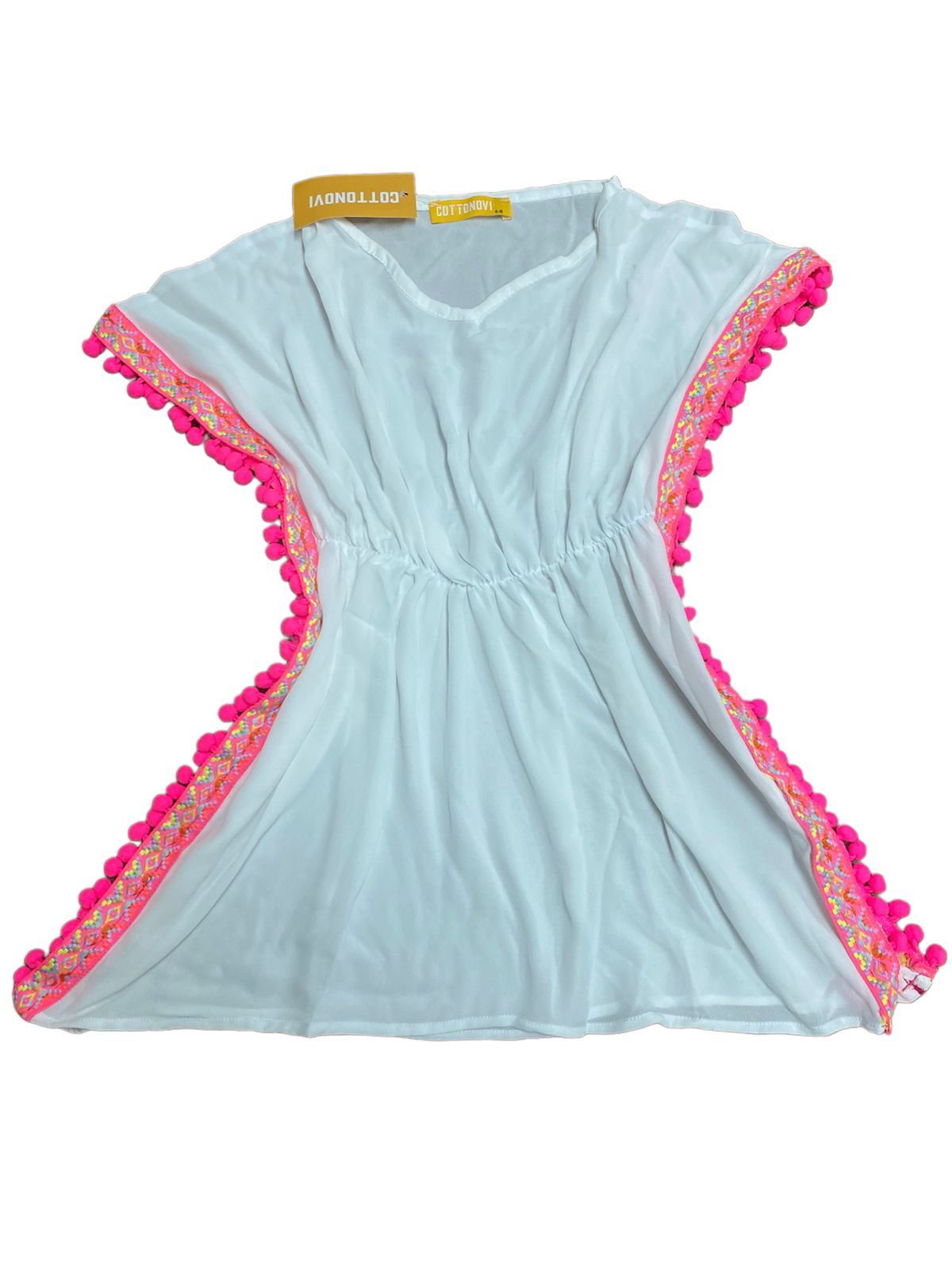 Complete her pool/beach day style with a soft, trendy cover-up featuring fun pompom trim details and an elastic waist for an easy fit.