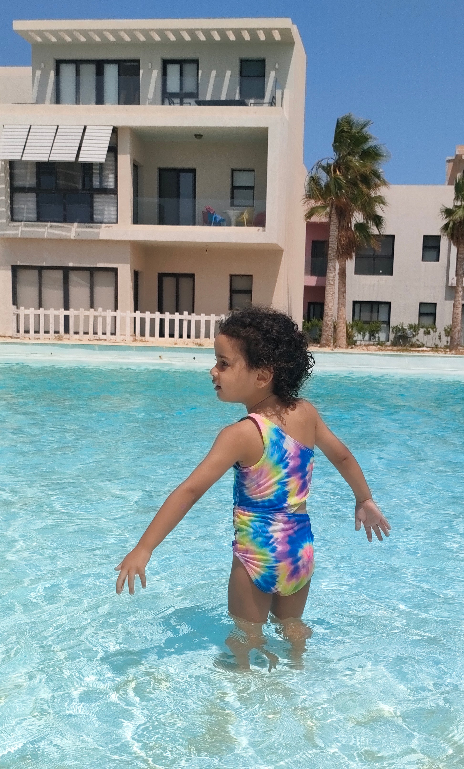 Neon Swirl one piece swimsuit with side trendy cut out.