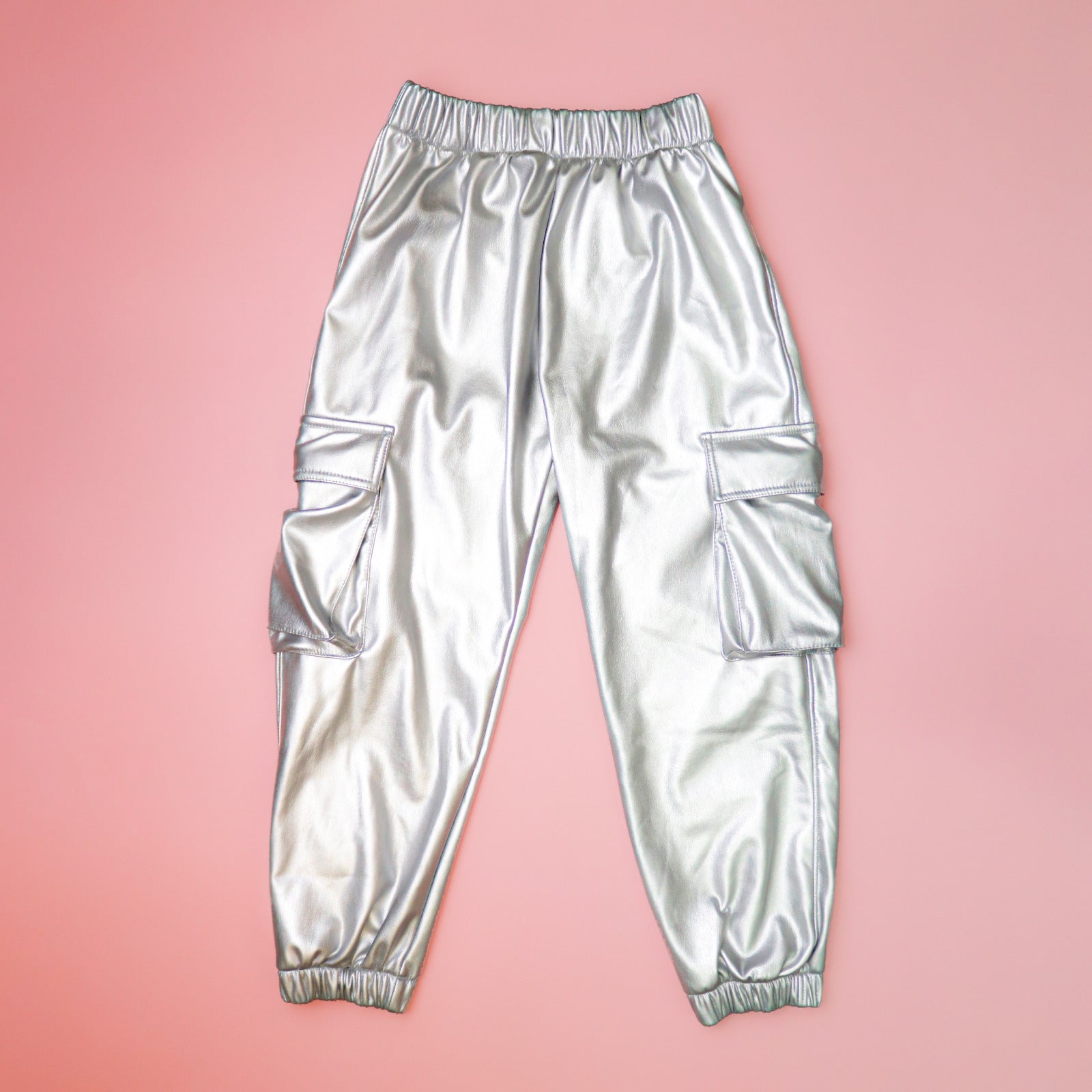 Leather season is here, shop our New mettalic cargo sweatpants with fleece inside for extra warmth