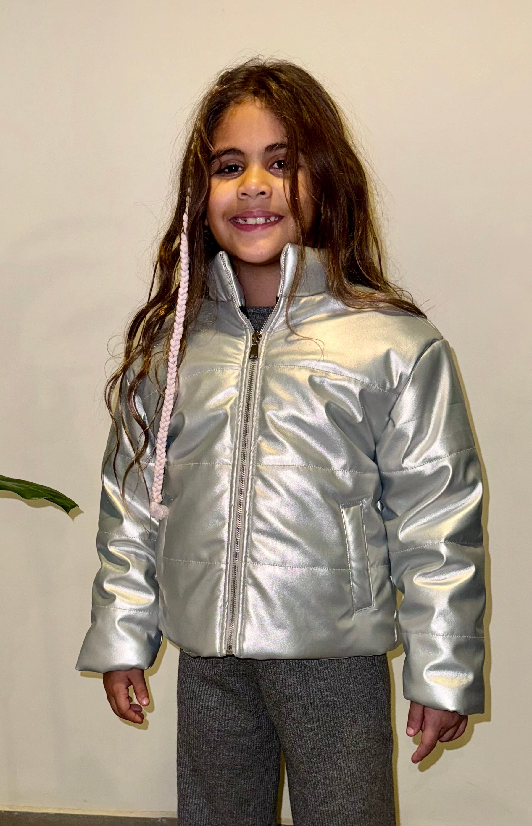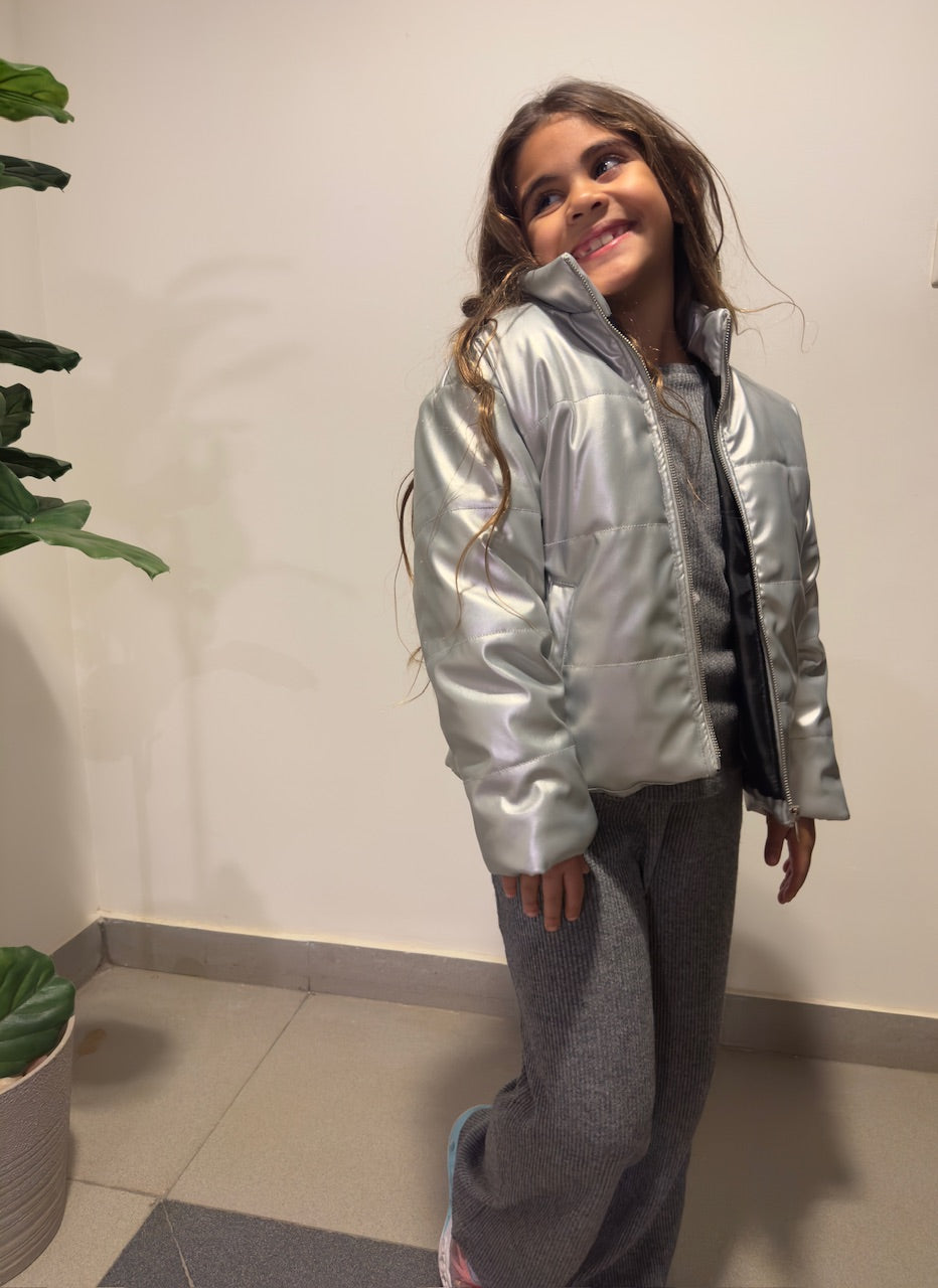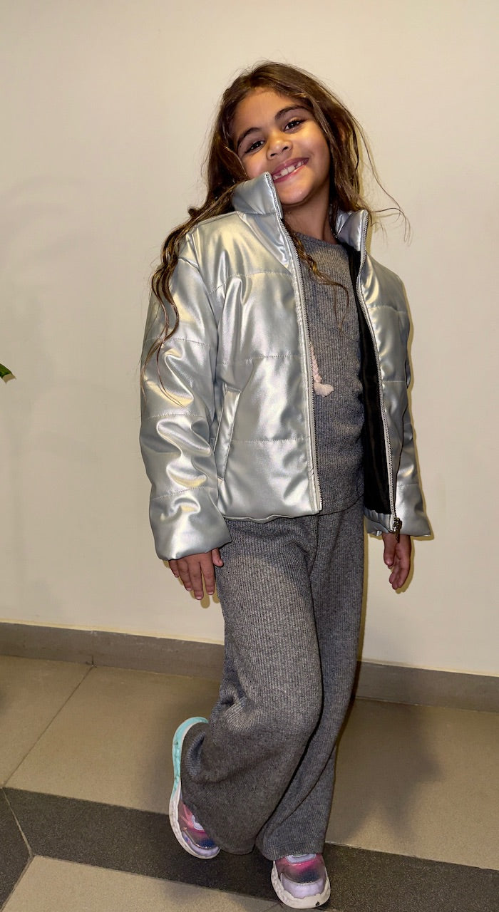 Silver metallic leather jacket